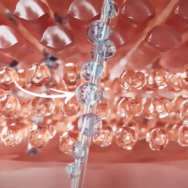Puede alcanzar eficazmente las capas profundas de la dermis (dermis reticular) e incluso puede tener cierto grado de distribución en la hipodermis superficial. Las espículas aseguran que este AH se distribuya de manera más uniforme y en mayores concentraciones en las capas medias y profundas de la dermis. Esto optimiza su capacidad para estimular la producción de componentes de la matriz extracelular y ejercer sus efectos regenerativos.