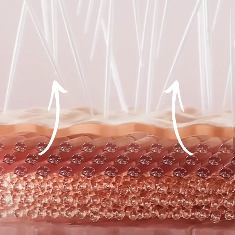 Las espículas potencian enormemente su penetración, permitiéndole alcanzar de manera más consistente las capas superiores de la dermis (dermis papilar). Esto significa que el AH puede interactuar más directamente con los fibroblastos en la dermis, estimulando potencialmente la producción de AH endógeno y colágeno, y mejorando la calidad de la matriz extracelular. La mejora de penetración puede ser de 5 a 10 veces o incluso mayor, ya que las espículas “allanan el camino” para su naturaleza lipofílica.